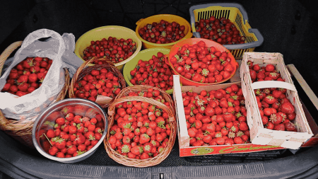 Jarní fotka našeho sadu...žluté pampelišky všude, v popředí jezírko, na obzoru hrad Pecka